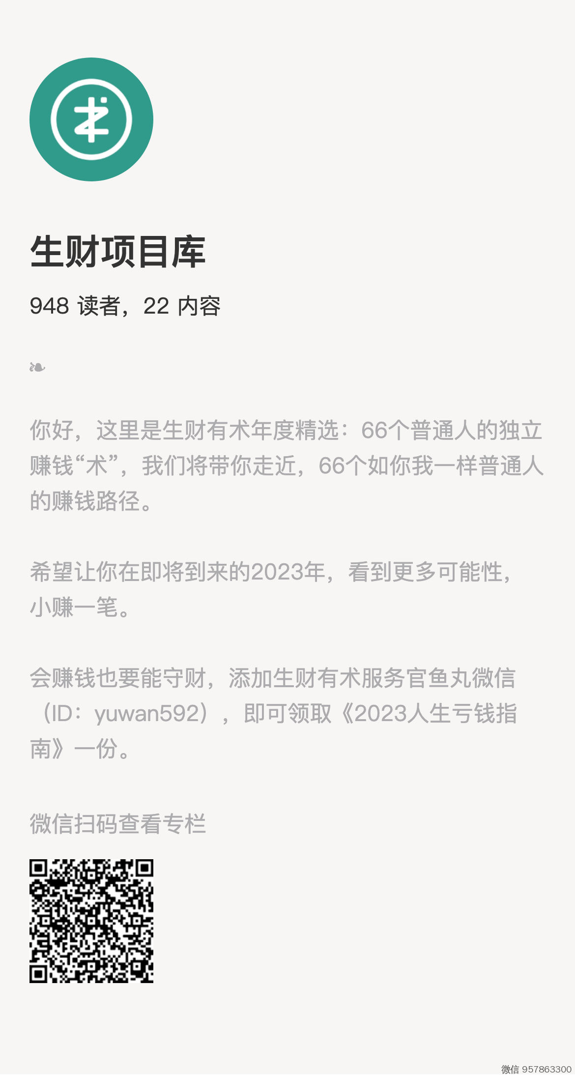 1、如上微信扫码订阅,截图支付记录,微信 957863300 找我,送你一份「从素人到IP的可复制路径」原创资料(以及老徐过往 10 年的原创资料包)