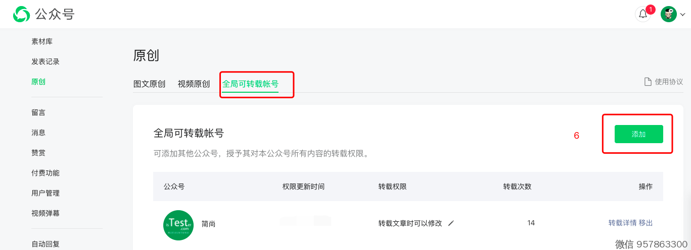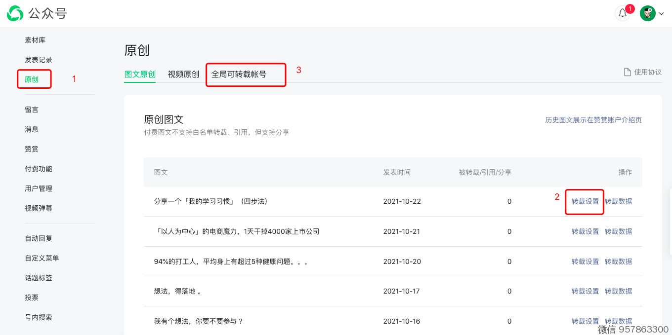2、开放这个号的所有文章转载(俗称:全局可转载)