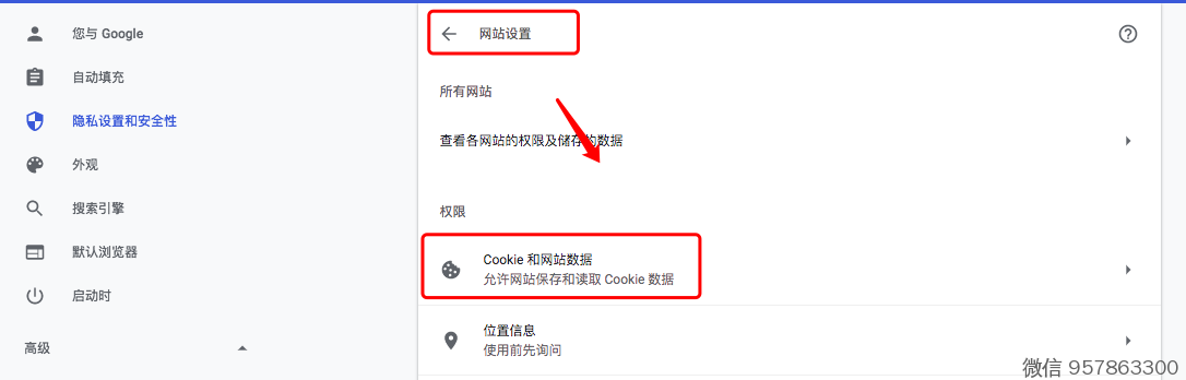 - 在“隐私设置和安全性”下方,点击网站设置。
