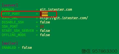 搜索关键词 3000 (如果你不知道怎么修改文件内容,建议恶补下Linux知识 http://istester.com/linux.html)改成其他端口,比如 3003 ,保存