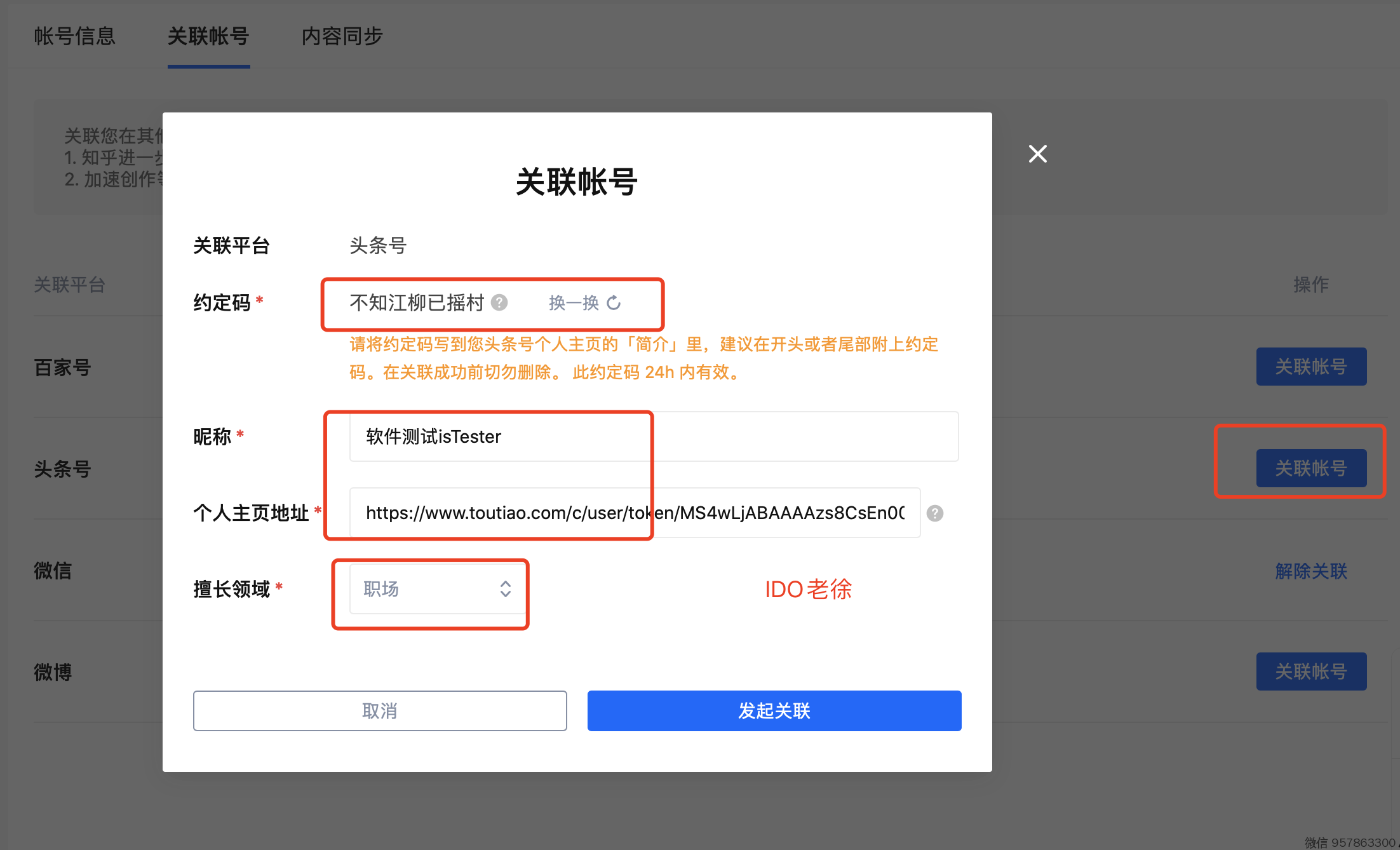 我的-创作中心-更多功能-账号管理-关联账号、内容同步